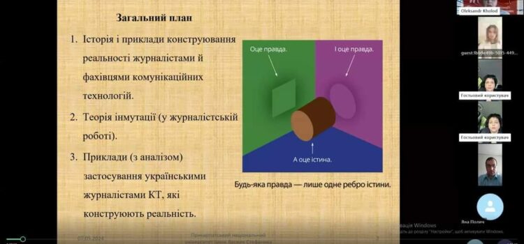 Цими днями, в рамках міжнародного проєкту «Журналістика: український і словацький досвід» відбулася відкрита онлайн-лекція на тему «Комунікаційні технології в роботі журналістів як засоби конструювання реальності», яку презентував Олександр Холод, доктор філологічних наук, професор кафедри журналістики Прикарпатський Національний Університет імені Василя Стефаника.