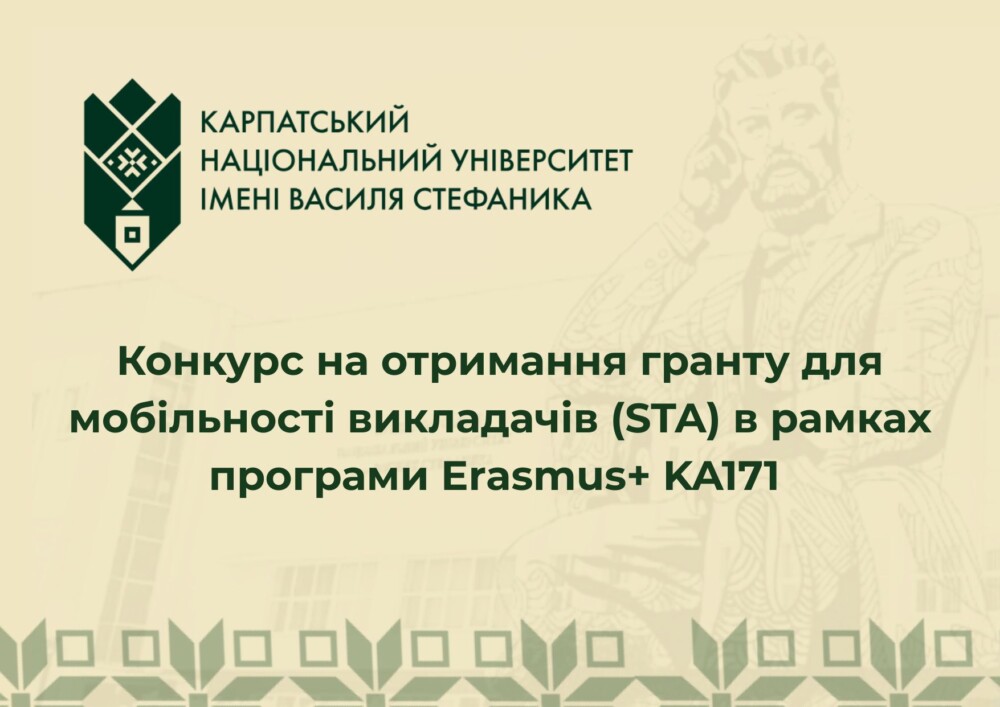 Конкурс на отримання гранту для мобільності викладачів (STA) в рамках програми Erasmus+ KA171