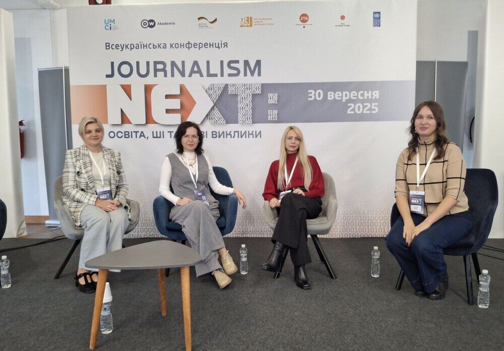 Викладачки кафедри журналістики Карпатського національного університету імені Василя Стефаника Соломія Хороб, Руслана Савчук, Галина Пристай та Ірина Копистинська відвідали Всеукраїнську конференцію “Journalism NEXT: освіта, ШІ та нові виклики”, що відбулася днями у стінах Києво-Могилянської академії.