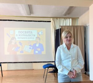 Пані Вікторія привітала першокурсників, наголосила на цінності вільної журналістики та важливості дотримання професійних стандартів і етичних принципів. Вона підкреслила, що молоде покоління майбутніх медійників приємно вражає своєю свідомістю, мотивацією та готовністю служити правді.