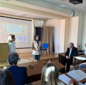 Важливим моментом заходу стало вручення членського квитка Національної спілки журналістів України студентці Марії Залужній. Почесну місію виконала Вікторія Плахта — заслужена журналістка України, відповідальна секретарка Івано-Франківської обласної організації НСЖУ, координаторка Івано-Франківського Центру журналістської солідарності та давня партнерка кафедри.