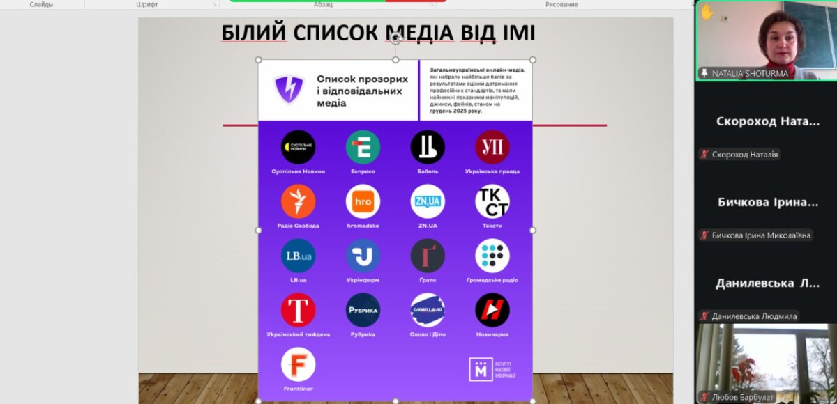 Програма дня була насиченою та складалася з двох ключових модулів. Під час першого заняття, присвяченого соціальним медіа як джерелу новин, слухачі проаналізували трансформацію медіапростору від Web 1.0 до Web 3.0. Особливу увагу приділили статистиці: за даними досліджень, майже 80% українців обирають соціальні мережі головним джерелом інформації, що робить питання медіагігієни критично важливим.