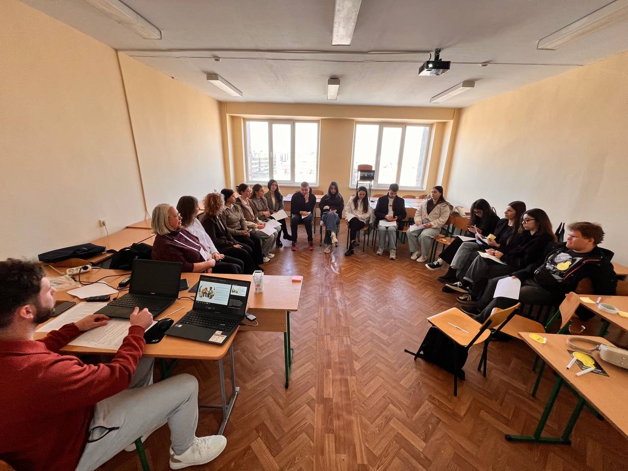 Окремий блок було присвячено технікам психогігієни та самодопомоги. Студенти виконували дихальні та релаксаційні вправи, практикували техніки заземлення, вивільнення емоцій і відновлення внутрішнього ресурсу. Використовували також рефлексивні методики, зокрема «Коло сили», «3–2–1» та метафоричні асоціації, які допомогли краще усвідомити власні емоційні стани й професійні виклики.