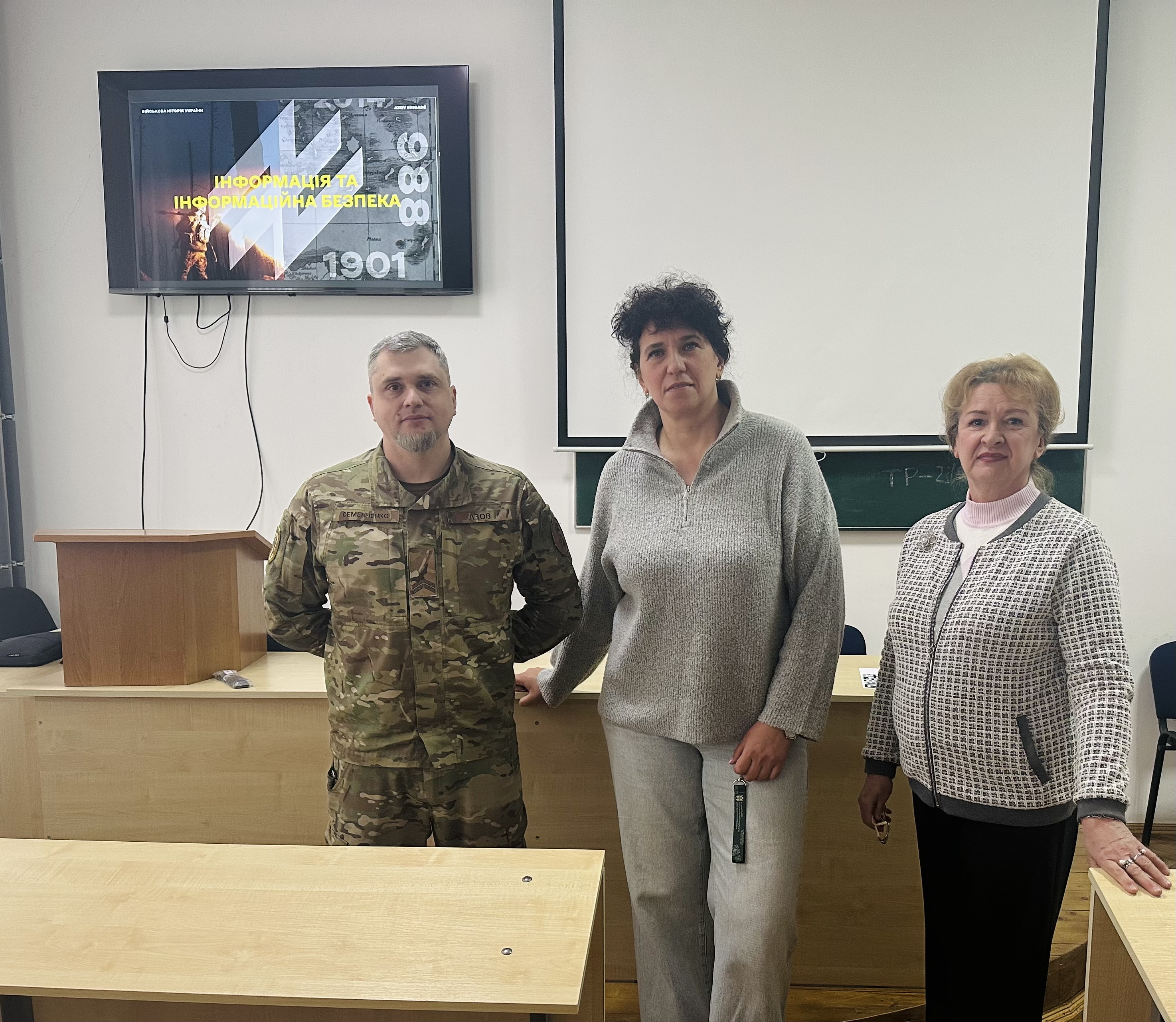 Діалог зі студентами проводив військовослужбовець Хорунжої служби 12-ї бригади спеціального призначення «Азов» Національної гвардії України, молодший сержант Ігор Семенченко. Упродовж 17.03–19.03.2026 року було проведено чотири заходи для 277 слухачів за участі заступників із виховної роботи та кураторів академічних груп.
